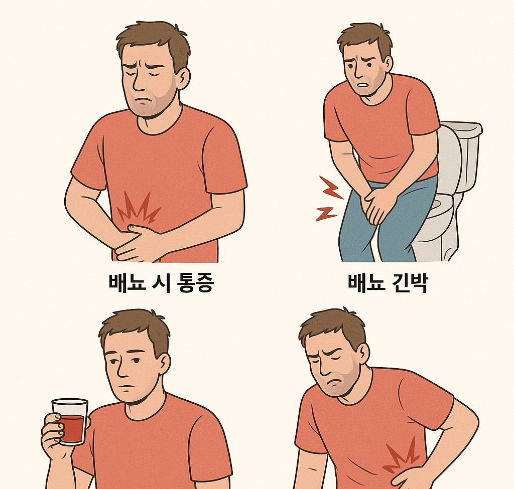 - 혈뇨: 소변에 피가 섞여 나오는 경우