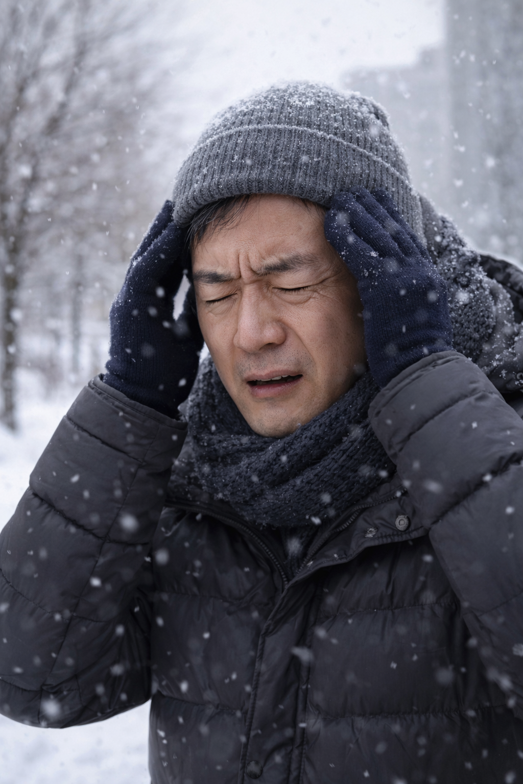 겨울철 두통의 가장 큰 원인은 '기온차'입니다. 따뜻한 실내에 있다가 영하권의 밖으로 나가는 순간, 우리의 뇌혈관과 두피 주변 근육은 체온 유지를 위해 급격히 수축합니다. 이 과정에서 뇌로 가는 혈류량에 변화가 생기고 신경이 자극을 받아 통증이 발생합니다.
